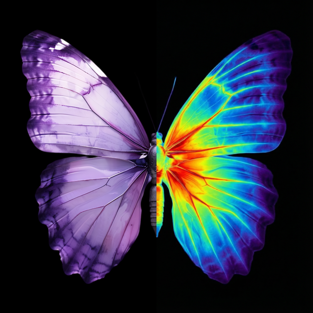 Cool monochromatic thermal aesthetic with a futuristic, clinical look